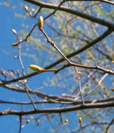 Prestige linden buds against the blue sky