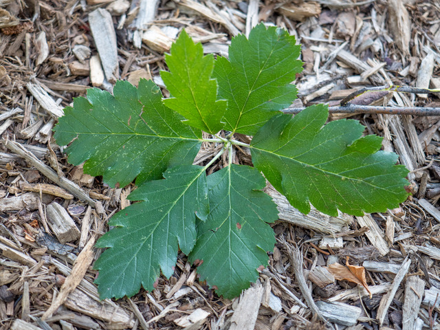 Previous Image Next Image P9280003_01 The leaves of the Swedish whitebeam looking very similar to that of the Oakleaf mountain ash.